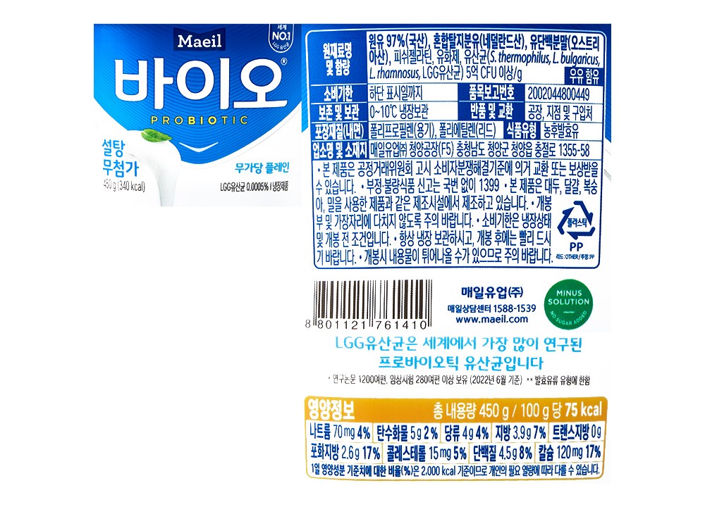 | 제품명 | 매일바이오 플레인 | 식품의 유형 | 농후발효유 |