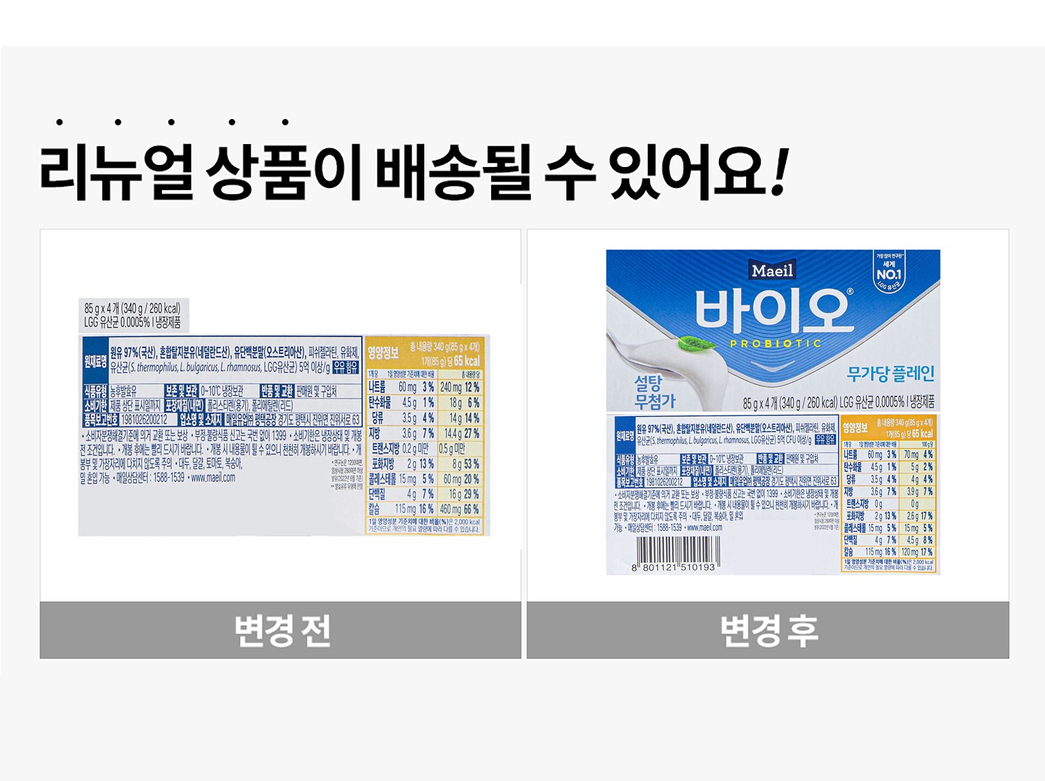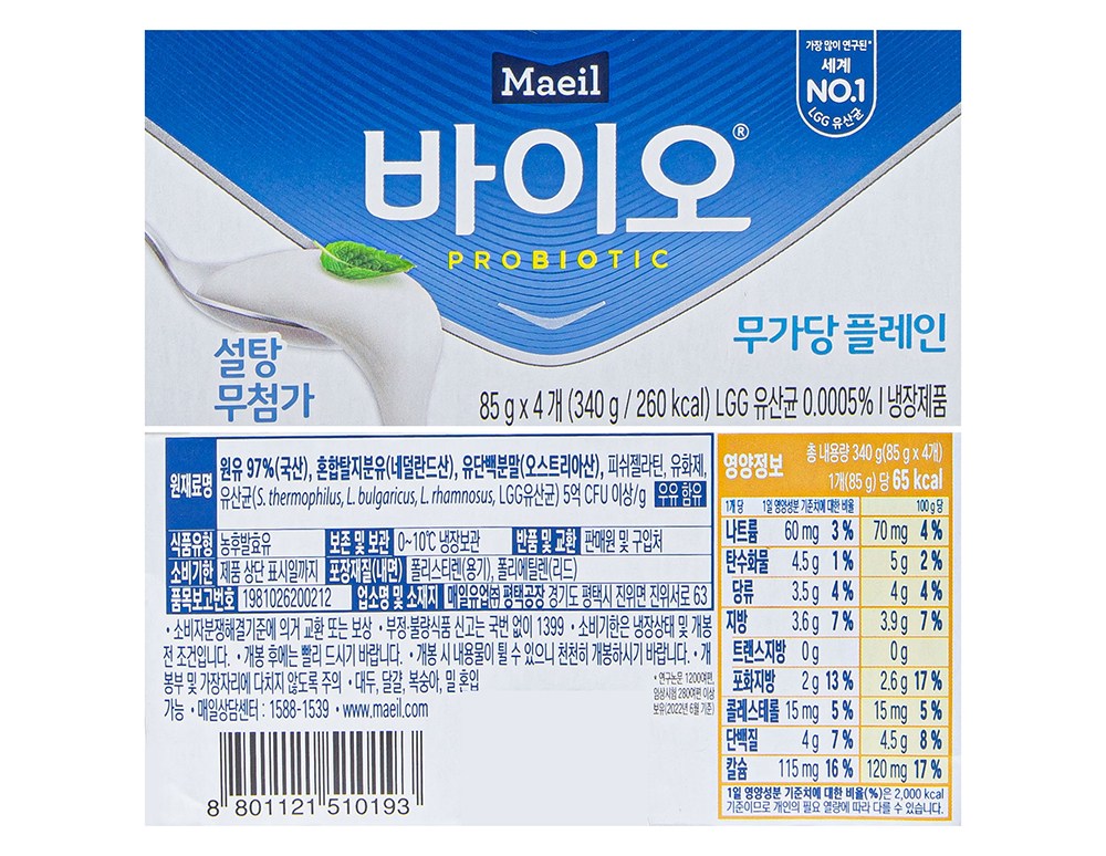 | 제품명 | 바이오 PROBIOTIC 무가당 플레인 | 식품의 유형 | 컨텐츠 참조 |