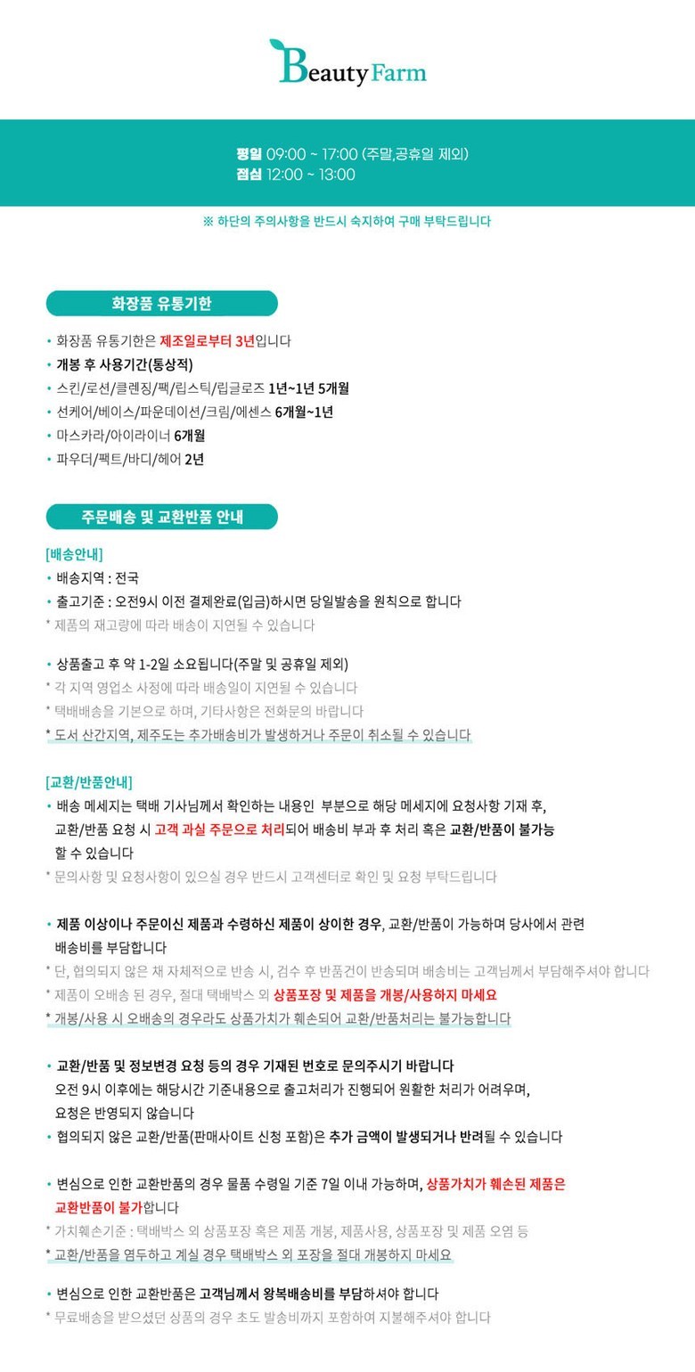 - ㆍ모니터 해상도의 차이로 인해 색상이나 이미지가 실제와 달라, 고객이 단순 변심으로 교환/반품을 무료로 요청하는 경우