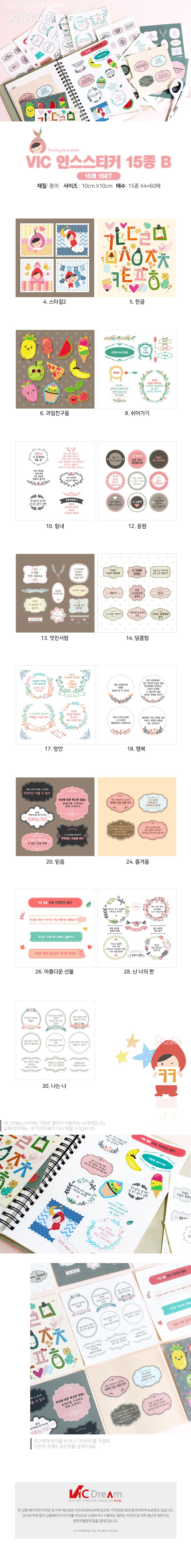 | 품명 및 모델명 | VIC 인스 인쇄소스티커 떡메 캐릭터 B세트 | 인증/허가 사항 | 해당없음(14세이상) |