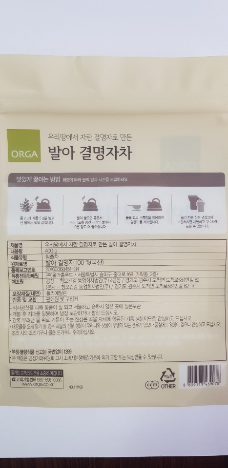 | 제품명 | 우리땅에서 자란 결명자로 만든 발아 결명자차 | 식품의 유형 | 침출차 |