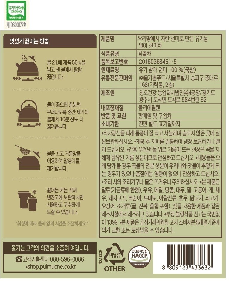 | 포장단위별 내용물의 용량(중량), 수량 | 500g, 1개 | 원재료명 및 함량 | 컨텐츠 참조 |