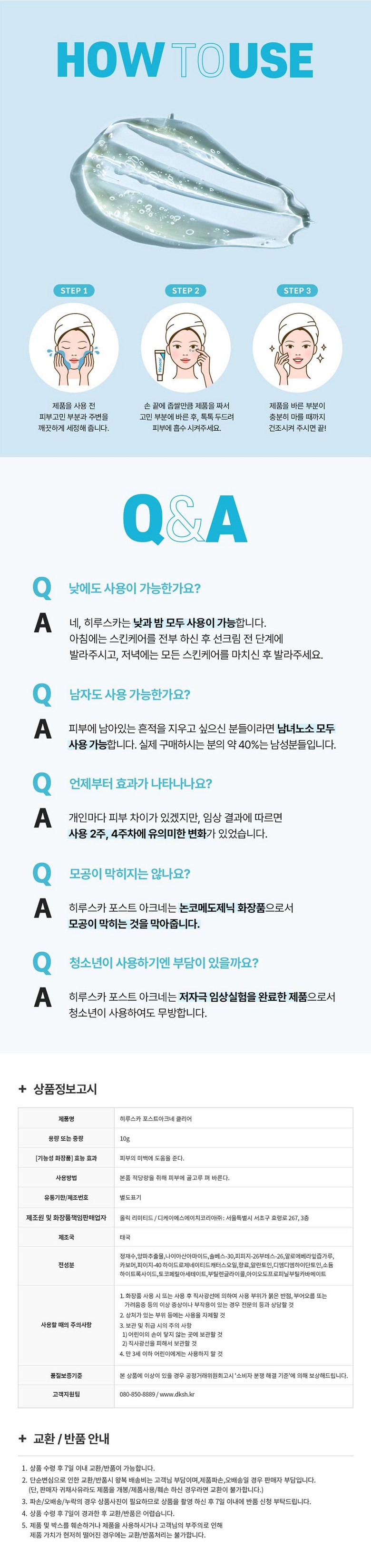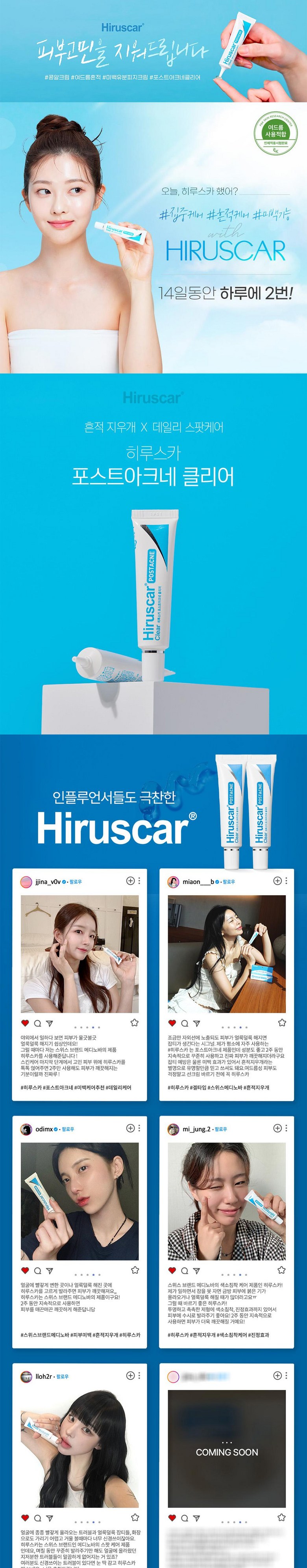 | 품명 및 모델명 | 히루스카 포스트 아크네 클리어 | 인증/허가 사항 | 상품 상세페이지 참조 |