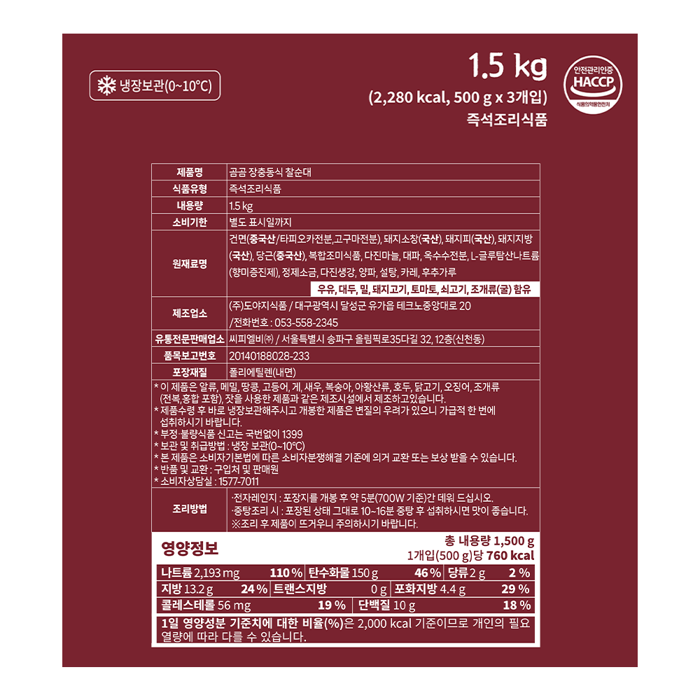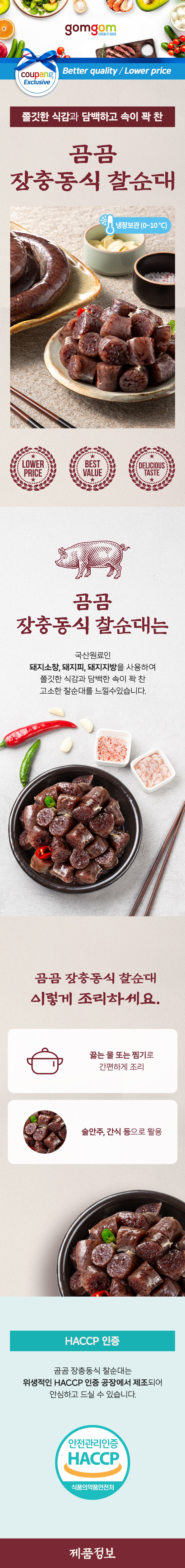 | 제품명 | 곰곰 장충동식 찰순대 | 식품의 유형 | 즉석조리식품 |