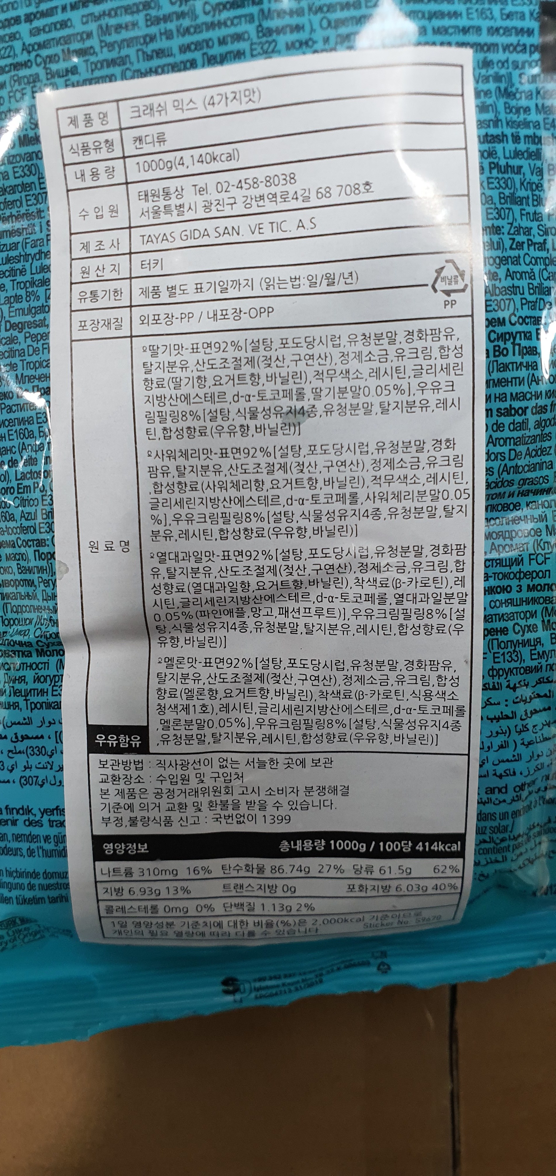 | 제품명 | 타야스 크래쉬 믹스 (4가지맛) | 식품의 유형 | 컨텐츠참조 |
