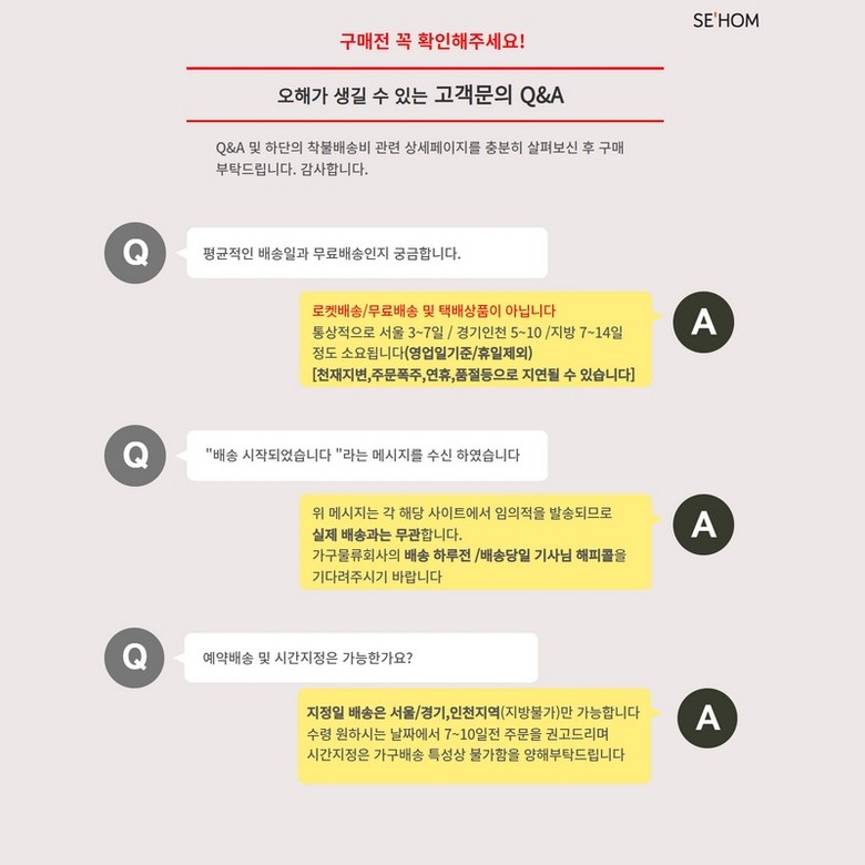 - ㆍ모니터 해상도의 차이로 인해 색상이나 이미지가 실제와 달라, 고객이 단순 변심으로 교환/반품을 무료로 요청하는 경우