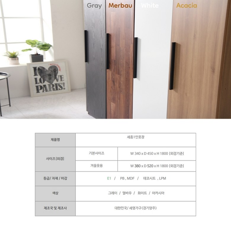 | 주요 소재 | MDF/PB/데코시트 | 제조자(수입자) | 세영가구 |