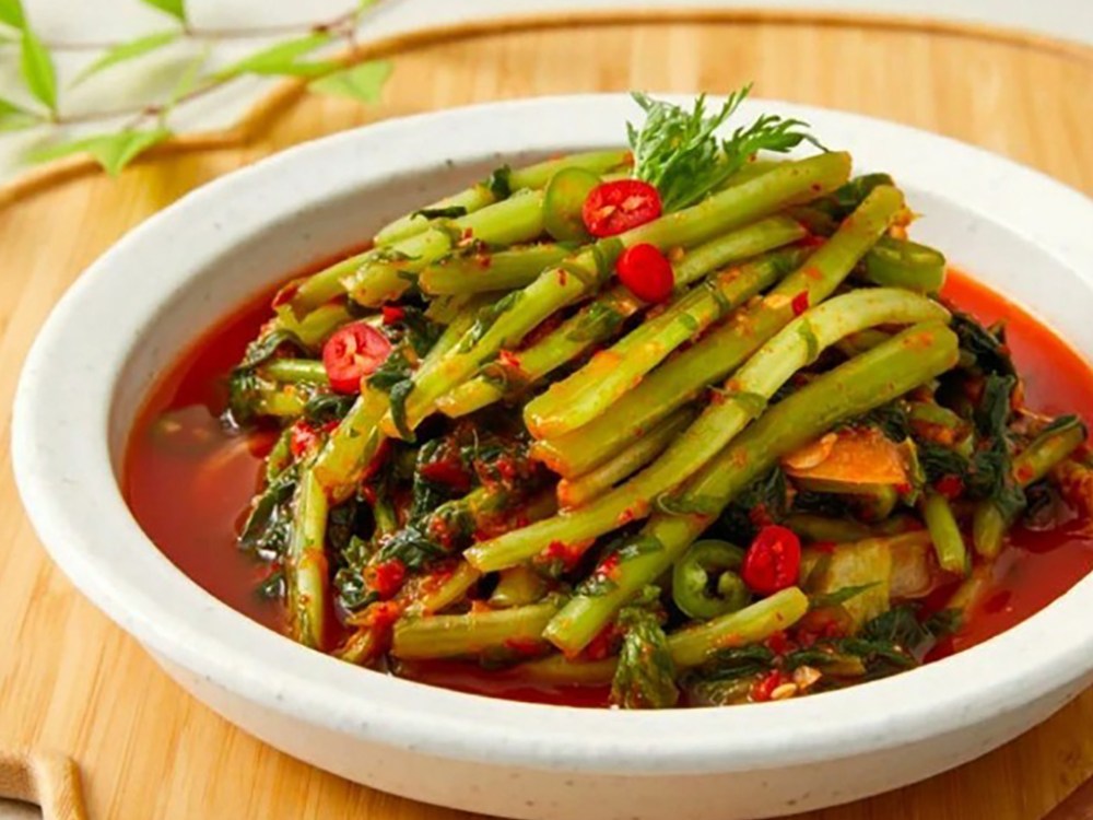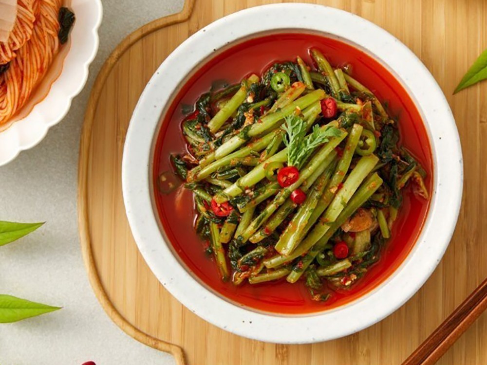 먹기 적당한 크기로 정갈하게 담근 열무김치를 소개할게요. 아삭아삭한 식감 사이로 퍼지는 시원한 맛을 즐길 수 있지요. 매콤하면서 새콤한 감칠맛 역시 일품이랍니다. 곧바로 식탁에 올려 밥반찬으로 즐겨보세요. 혹은 국수에 소복하게 올려 드시는 것도 별미랍니다.