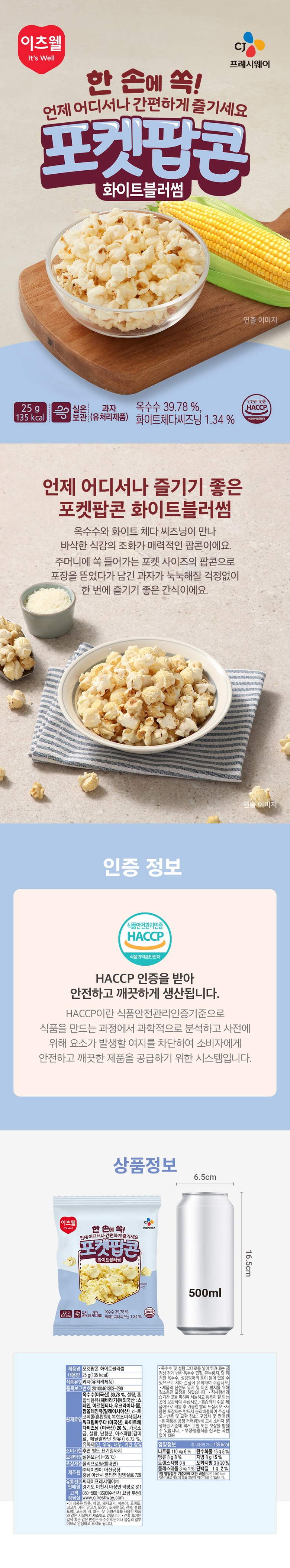 | 생산자 및 소재지 | 상품 상세페이지 참조 | 제조연월일, 소비기한 또는 품질유지기한 | 상품 상세페이지 참조 |