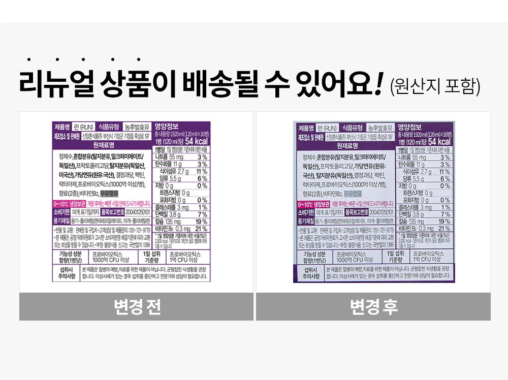 | 포장단위별 내용물의 용량(중량), 수량 | 120ml x 32개 | 원재료명 및 함량 | 컨텐츠 참조 |