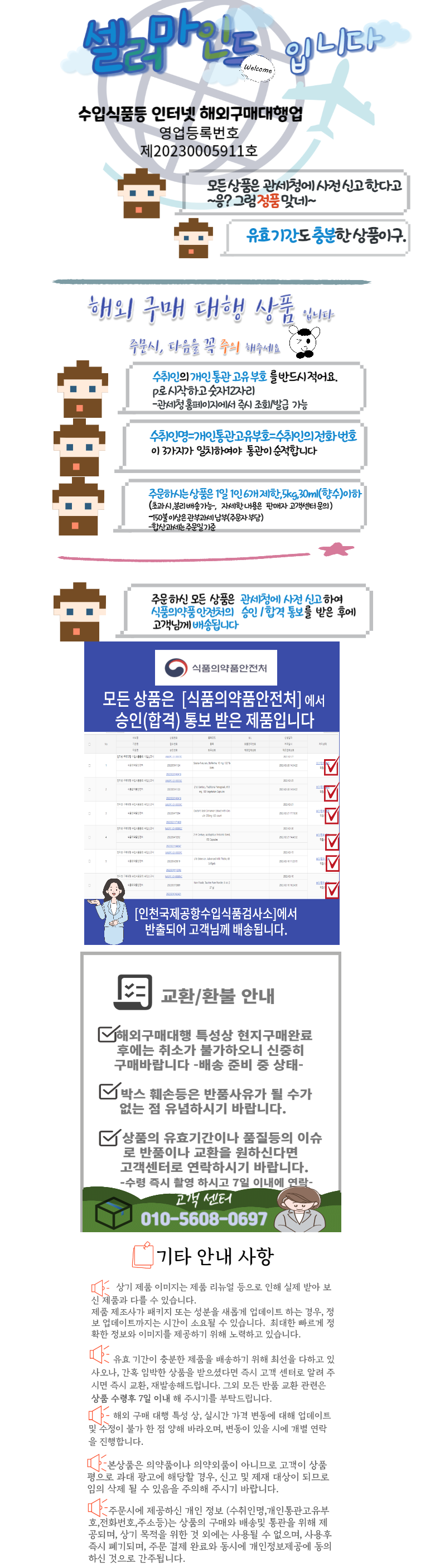 - 법규 개정에 따라 개인통관고유부호 검증 절차가 강화되었습니다. 결제 단계에서 받는 사람의 정보가 관세청 등록 정보 (성명, 휴대폰, 개인통관고유부호, 주소) 와 일치하는지 확인해주세요.