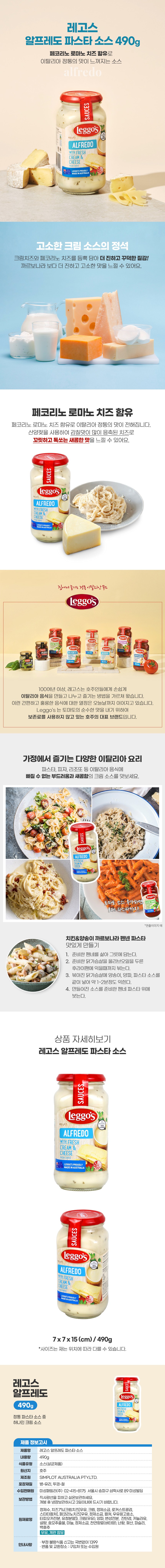 | 제품명 | 알프레도 파스타 소스 | 식품의 유형 | 소스류 |