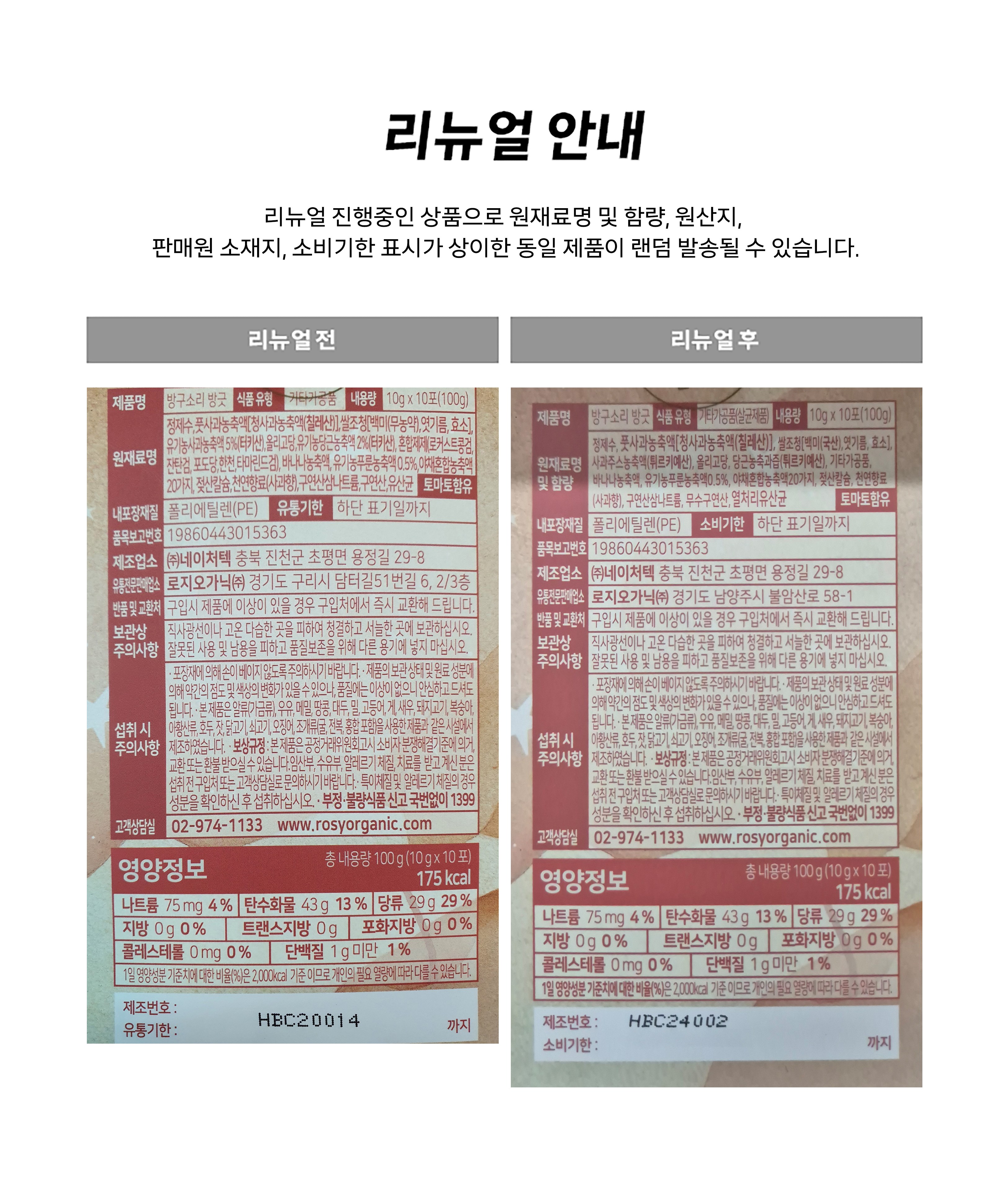| 포장단위별 내용물의 용량(중량), 수량 | 컨텐츠 참조, 4개 | 원재료명 및 함량 | 컨텐츠 참조 |