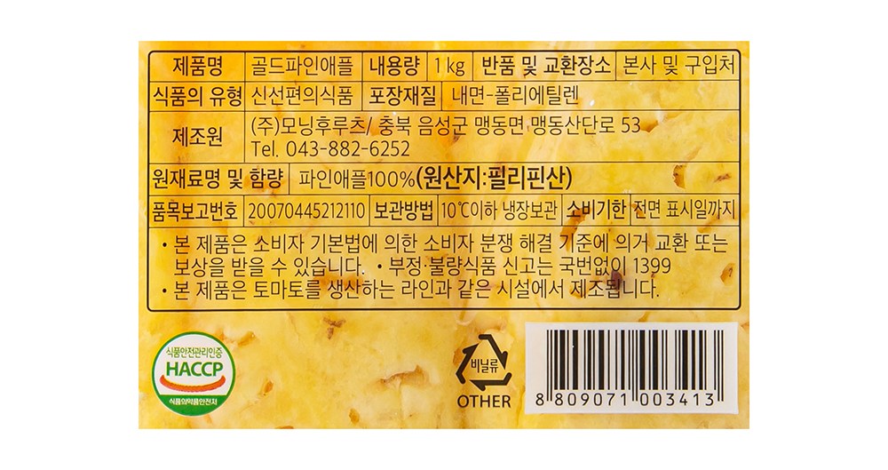 | 제품명 | 골드파인애플 | 식품의 유형 | 컨텐츠 참조 |