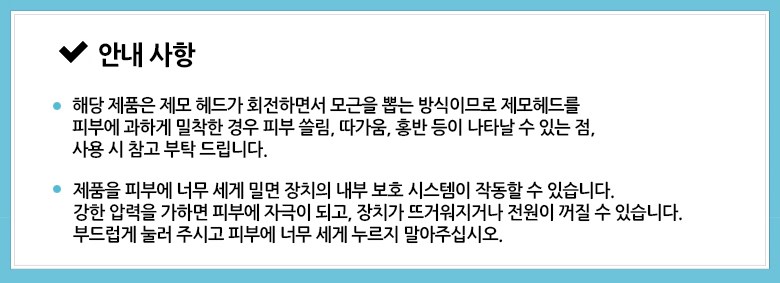 - 구성품: 센서티브캡 + 마사지캡 + 여행용파우치 + 충전 어댑터 + 청소용 브러쉬