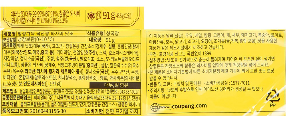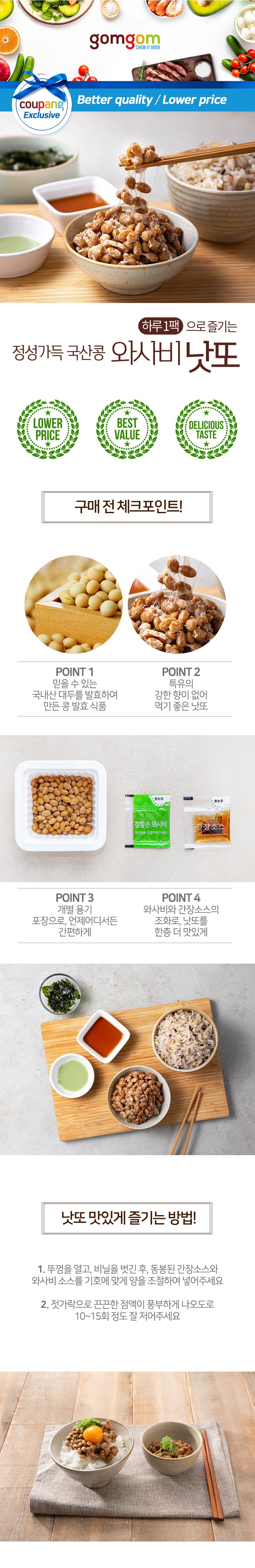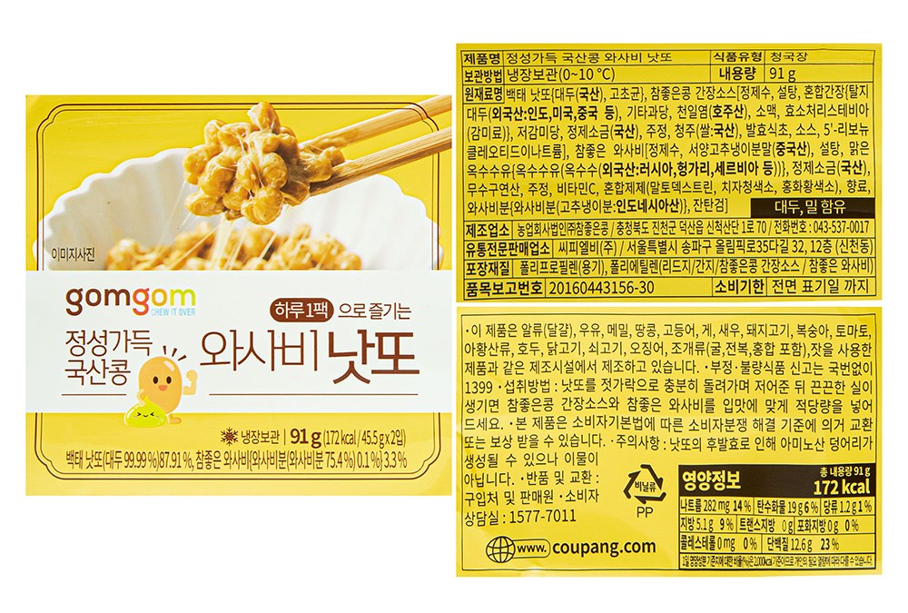 | 제품명 | 정성가득 국산콩 와사비 낫또 | 식품의 유형 | 청국장 |