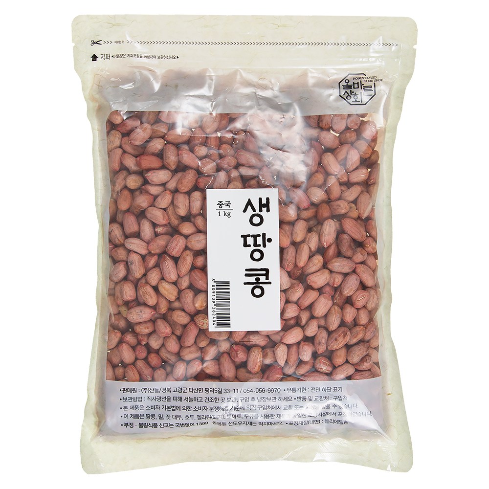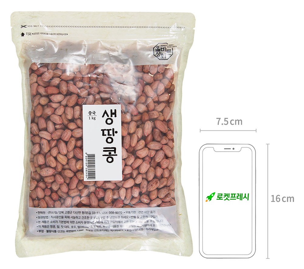 | 품목 또는 명칭 | 생땅콩 | 포장단위별 내용물의 용량(중량),수량,크기 | 1kg, 1봉 |