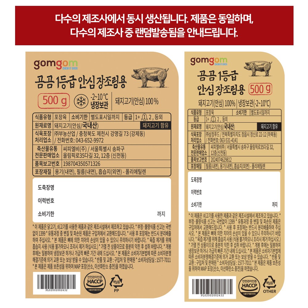 | 품목 또는 명칭 | 곰곰 1등급 안심 장조림용 | 포장단위별 내용물의 용량(중량),수량,크기 | 500g |