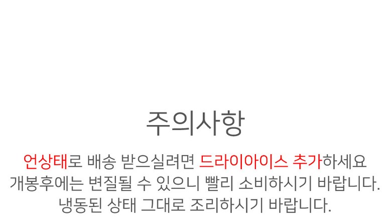 | 배송방법 | 신선/냉장/냉동 | 배송비 | 무료배송 · 도서산간 추가 배송비 - 제주 지역: 5,000원 - 도서산간 지역: 10,000원 |
