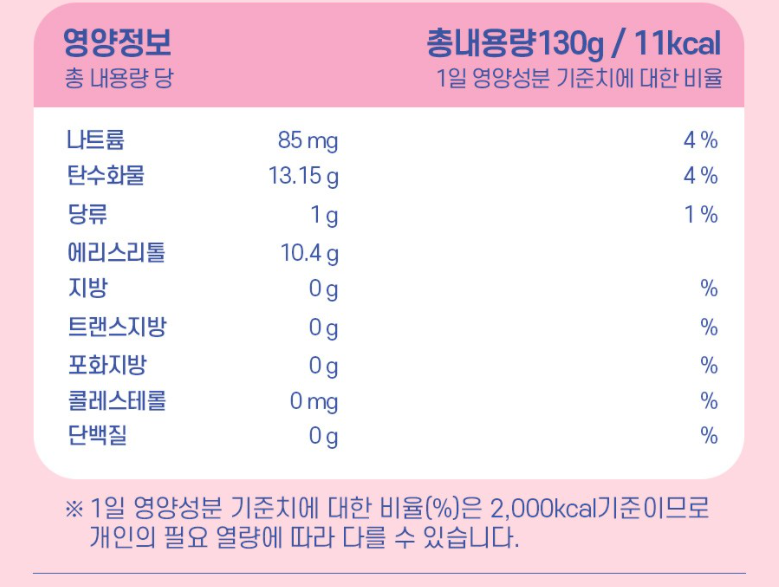 | 제품명 | 상품 상세페이지 참조 | 식품의 유형 | 캔디류 |