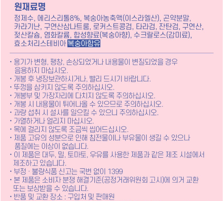 | 생산자 및 소재지 | 상품 상세페이지 참조 | 제조연월일, 소비기한 또는 품질유지기한 | 추후 업데이트예정 |