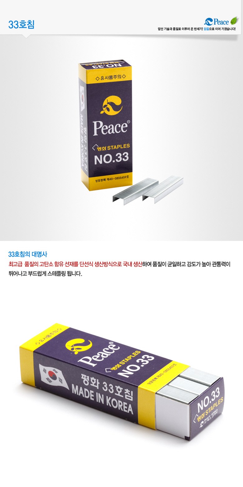 | 품명 및 모델명 | 피스코리아 peace 스테플러, 33호침 | 인증/허가 사항 | 해당없음 |