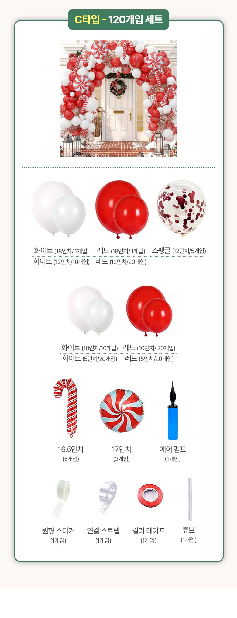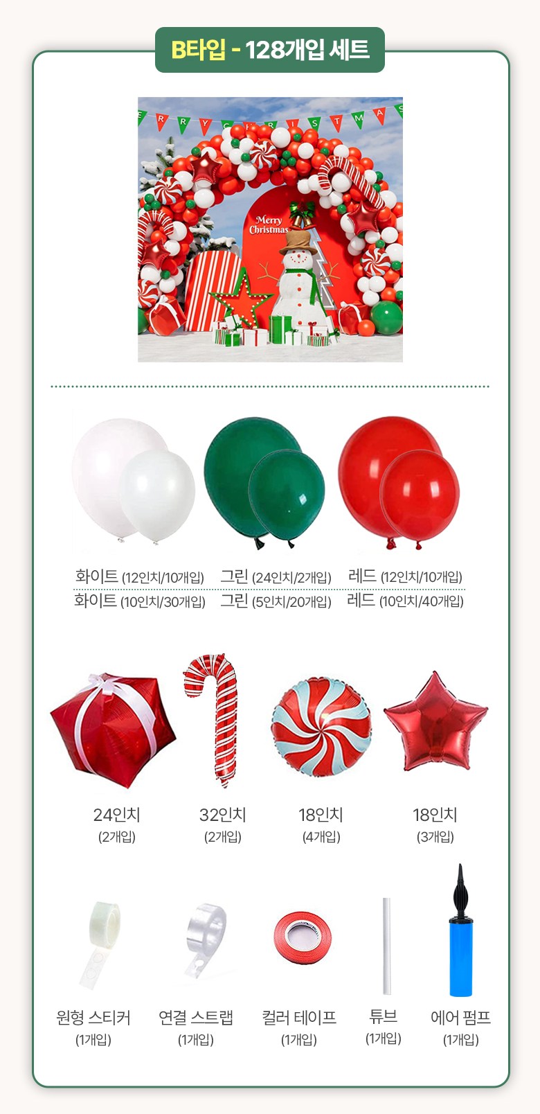투데이리빙 크리스마스 초대형 아치 풍선 풀세트 트리 산타 장식 파티 용품 이벤트 행사 소품, R98380C(C타..., 1세트