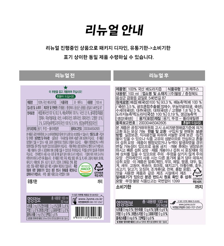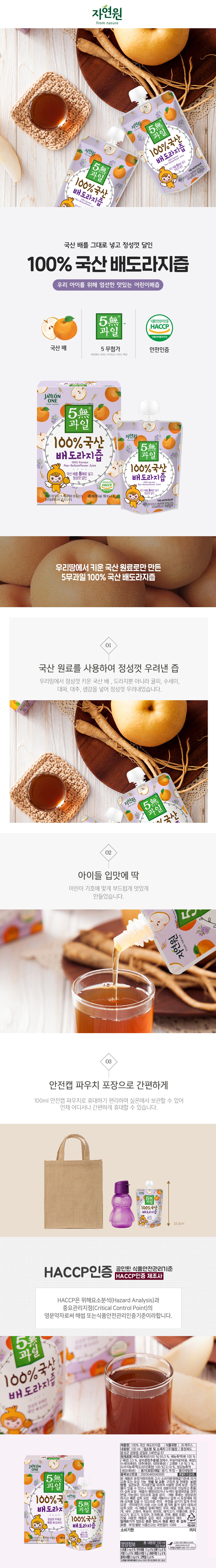 | 제품명 | 100% 국산 배도라지즙 | 식품의 유형 | 과채주스 |