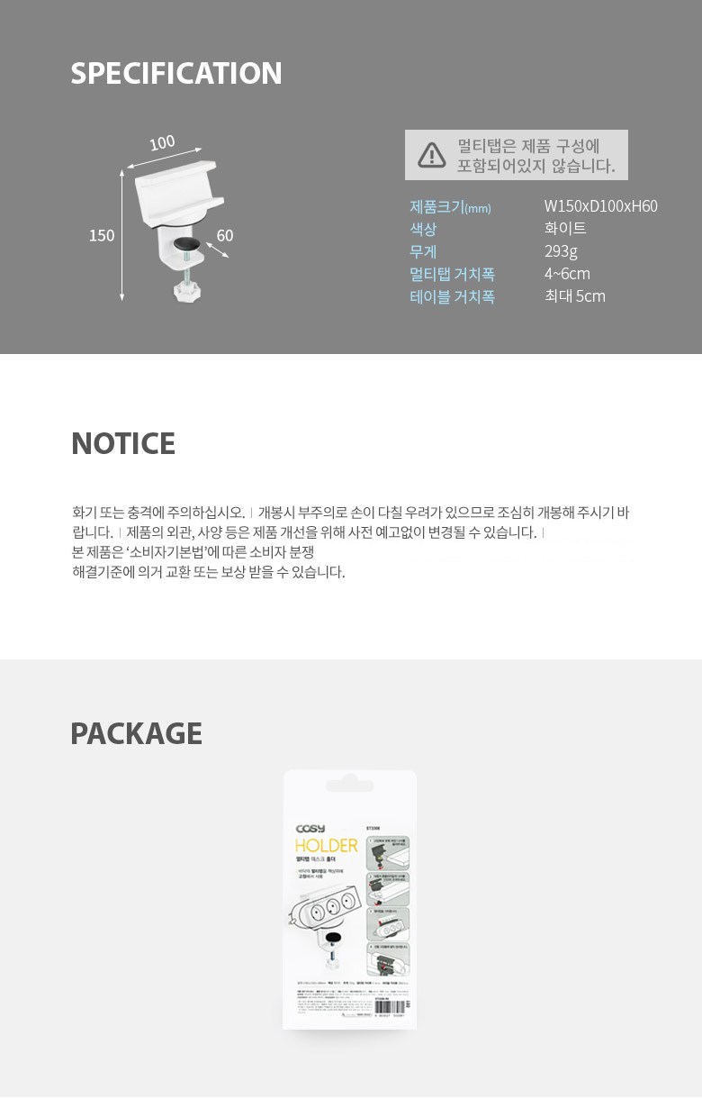 | 품명 및 모델명 | 멀티탭 데스크 홀더 | 인증/허가 사항 | 해당없음 |