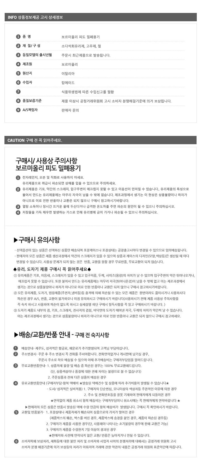 - ㆍ교환/반품에 관한 일반적인 사항은 판매자가 제시사항보다 관계법령이 우선합니다.