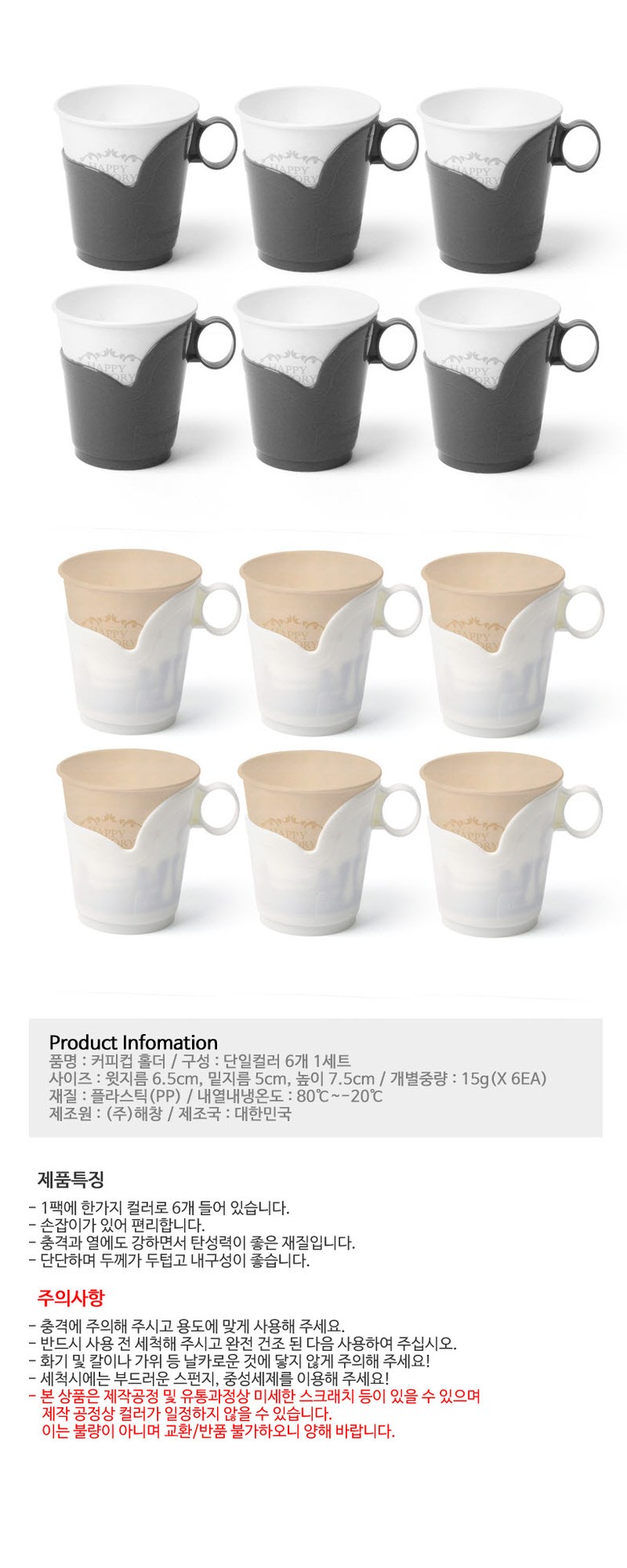 | 품명 및 모델명 | 종이컵홀더 | 재질 | PP |