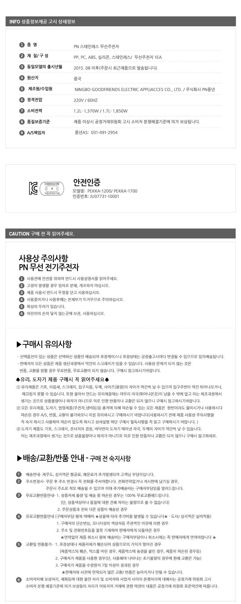 | 품명 및 모델명 | 상품상세정보표기 | KC 인증정보 | 상품상세정보표기 |