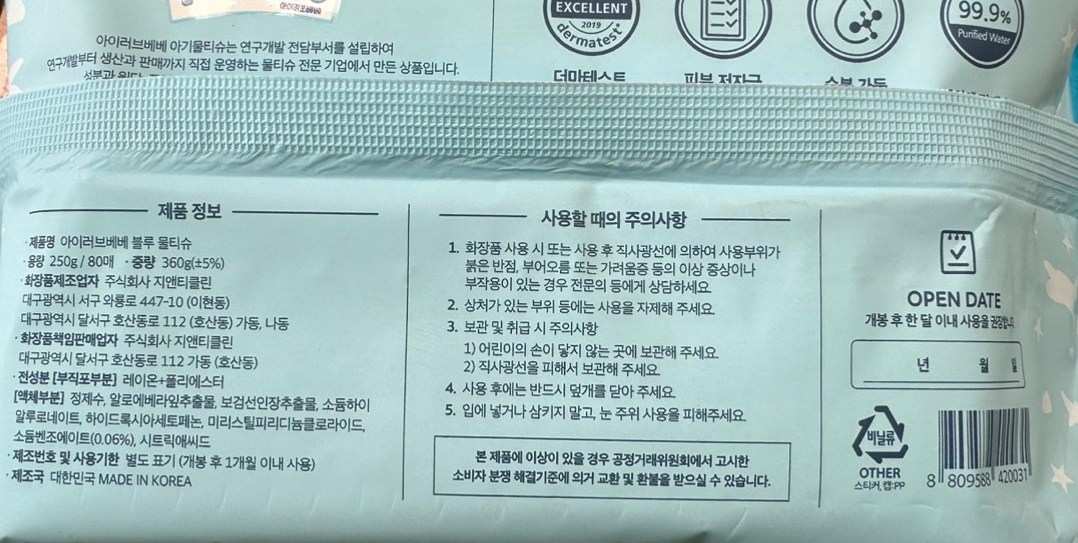 | 용량(중량) | 80매 | 제품 주요 사양 | 모든 피부용 |