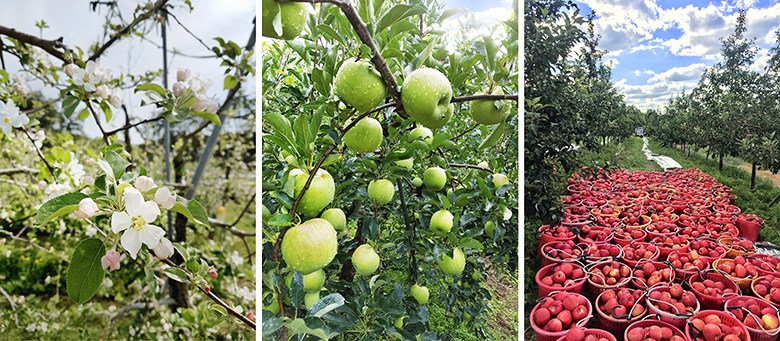 재배와 수확이 어려운 고지대에서 자란 귀한 사과의 소담스러운 꽃이 지면, 과실이 열리고 먹음직스러운 빨간 색으로 차차 물들어갑니다. 깨끗한 환경에서 재배한 사과, 안심하고 드셔보세요.