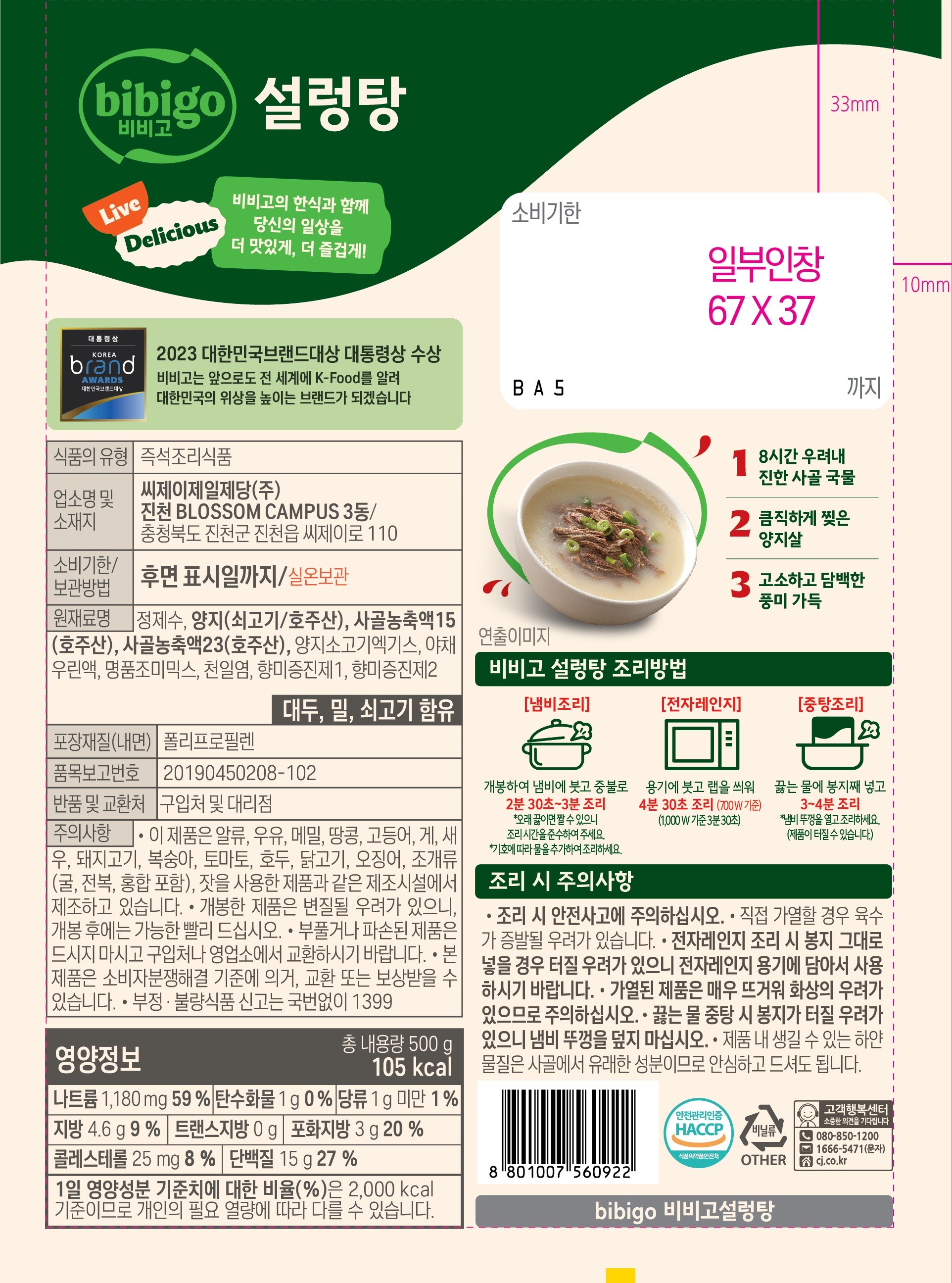 | 제품명 | bibigo비비고설렁탕 | 식품의 유형 | 컨텐츠 참조 |