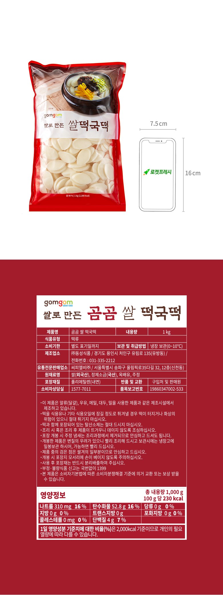 | 제품명 | 곰곰 쌀 떡국떡 | 식품의 유형 | 컨텐츠 참조 |