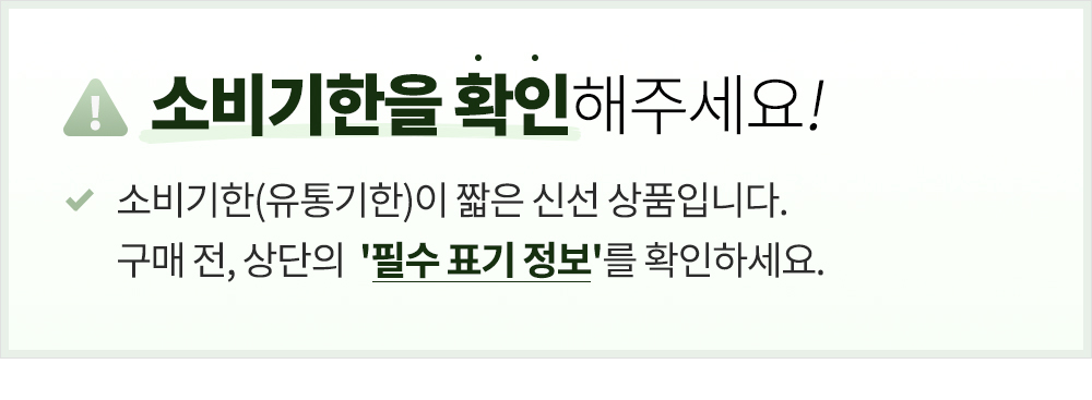| 생산자 및 소재지 | 컨텐츠 참조 | 소비기한 또는 품질유지기한 | 소비기한(또는 유통기한) : 2026년 03월 05일 이거나 그 이후인 상품 |