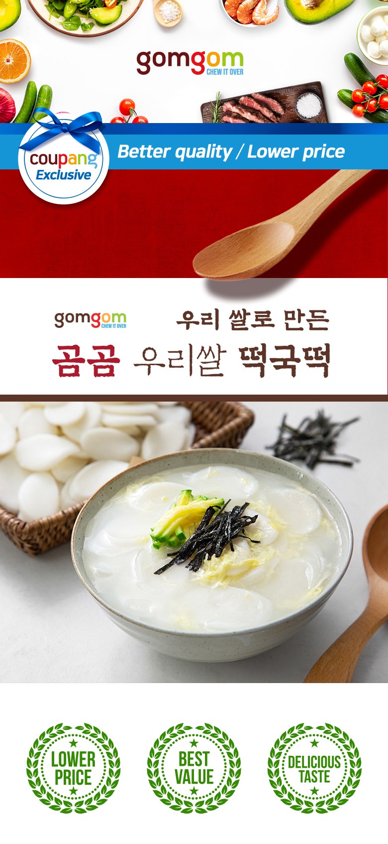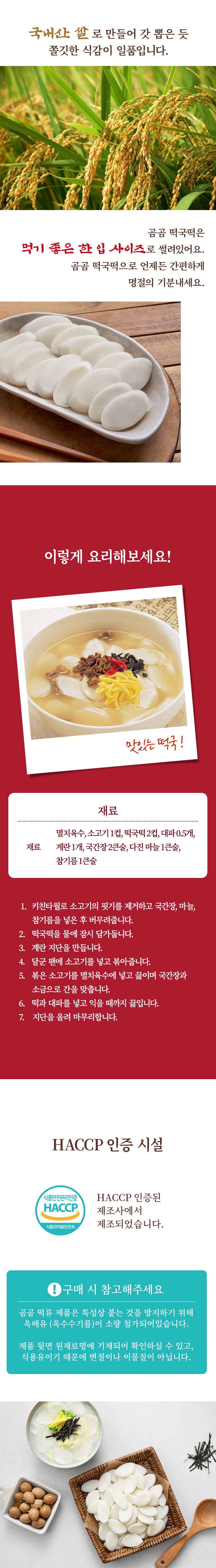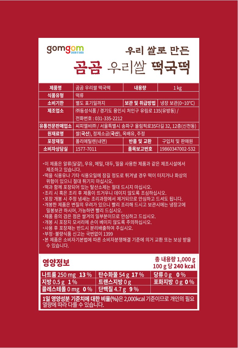 | 제품명 | 곰곰 우리쌀 떡국떡 | 식품의 유형 | 컨텐츠 참조 |