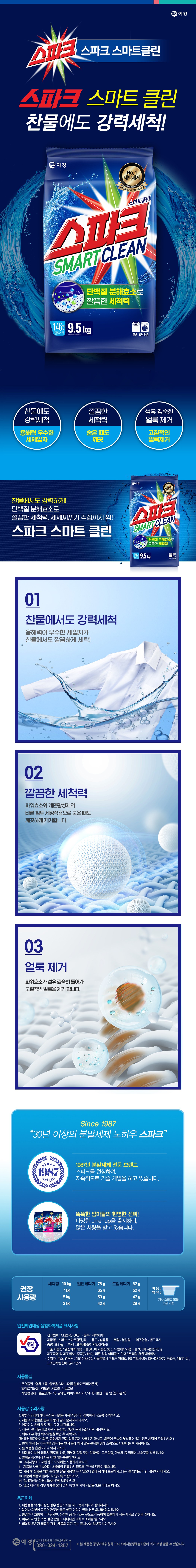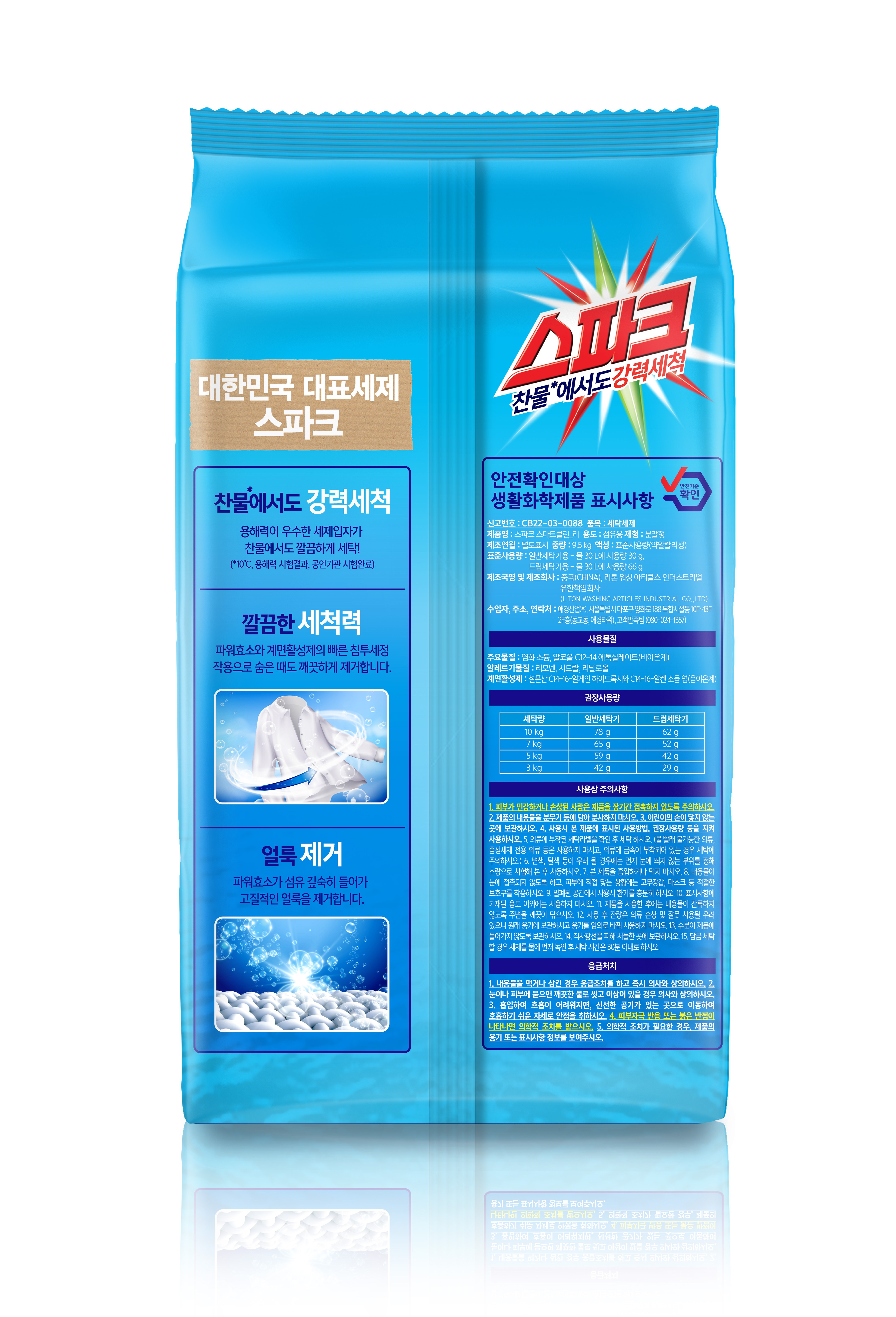 | 품목 및 제품명 | 세탁세제 / 스파크 스마트클린_리 | 용도(표백제의 경우 계열을 함께표시) 및 제형 | 섬유용 / 비분사형-분말형 |