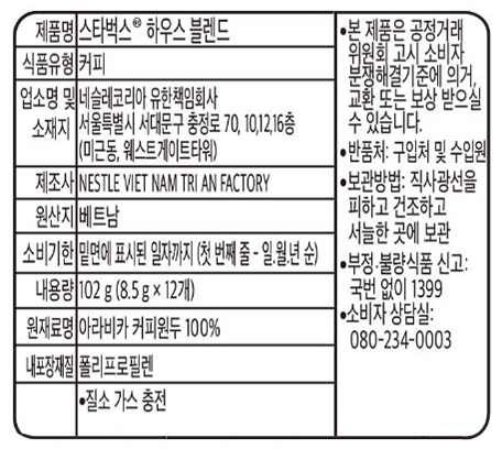| 포장단위별 내용물의 용량(중량), 수량 | (8.5g x 12개) x 6개 | 원재료명 및 함량 | 컨텐츠 참조 |