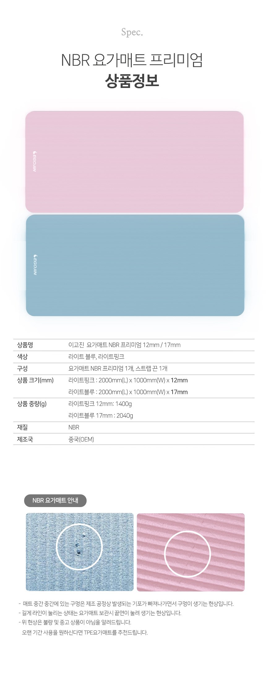 | 품명 및 모델명 | 이고진 요가매트 NBR 프리미엄 17mm | KC 인증정보 | 해당없음 |
