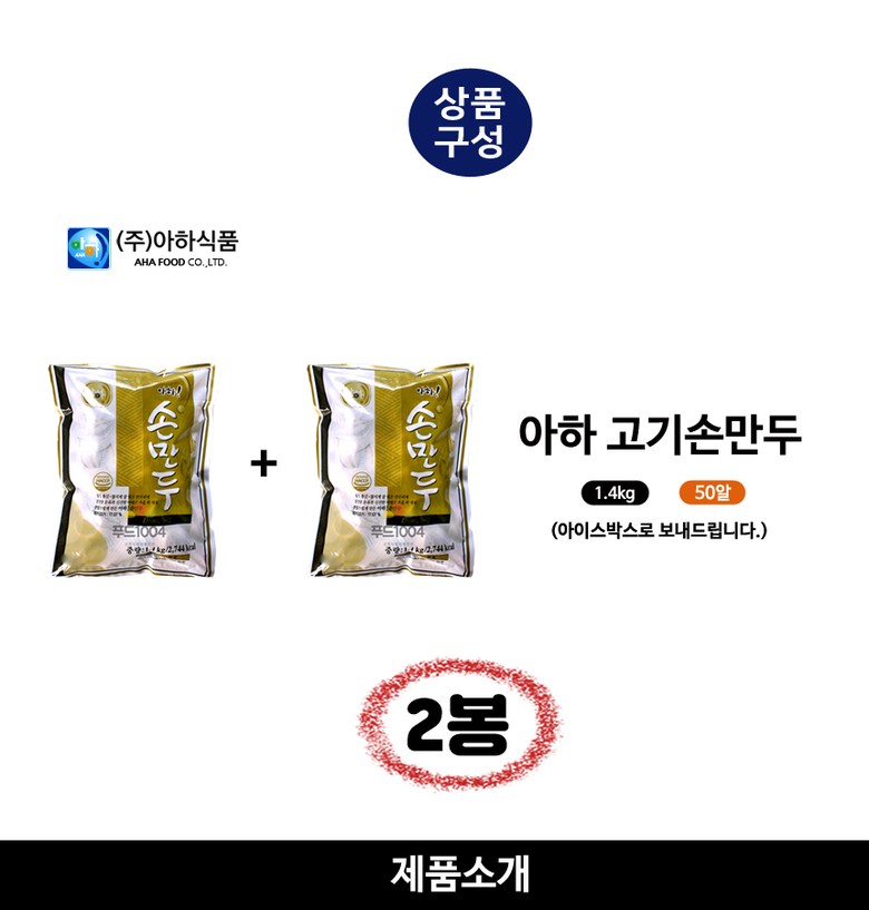 아하만두 1봉+1봉 고기손만두1.4kg+고기손만두1.4kg (평일오후2시전 결제주문건 다음날 택배도착), 1.4kg, 2개