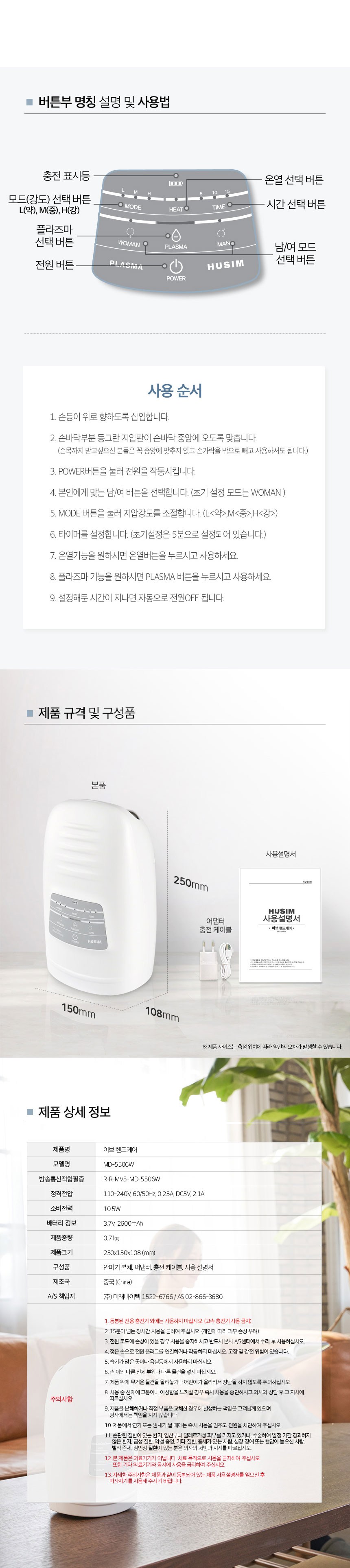 | 품명 및 모델명 | 이브 핸드케어 손 마사지기 MD-5506W | KC 인증정보 | 본품: R-R-MV5-MD-5506W/어댑터:SU10602-16001B |