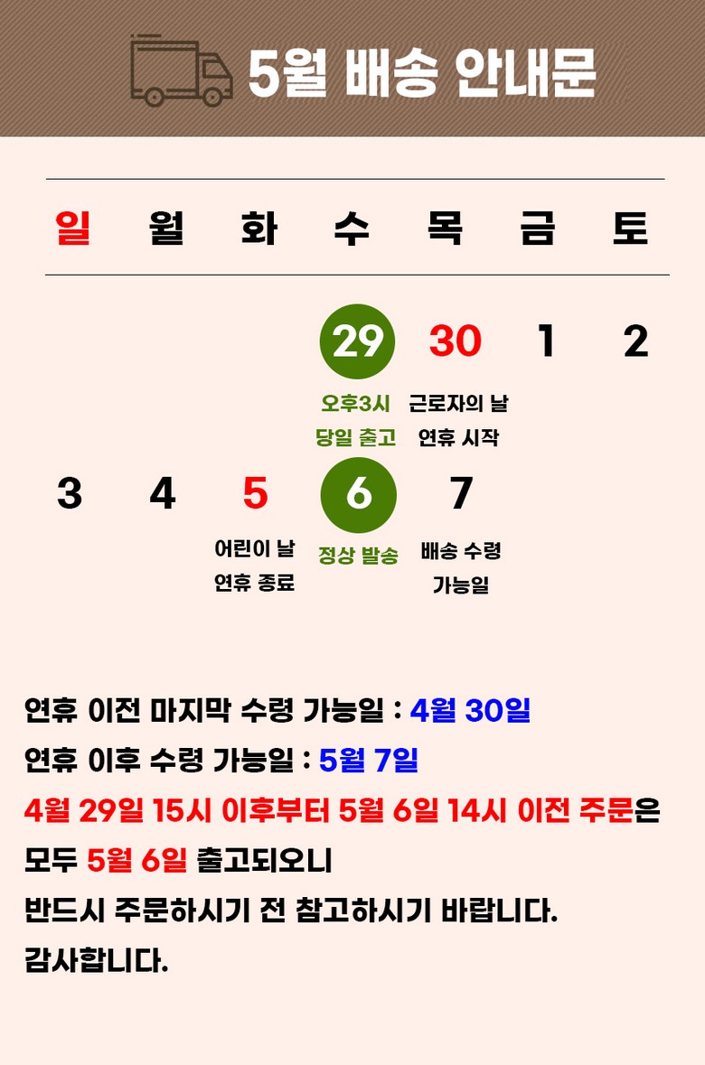 - ㆍ모니터 해상도의 차이로 인해 색상이나 이미지가 실제와 달라, 고객이 단순 변심으로 교환/반품을 무료로 요청하는 경우