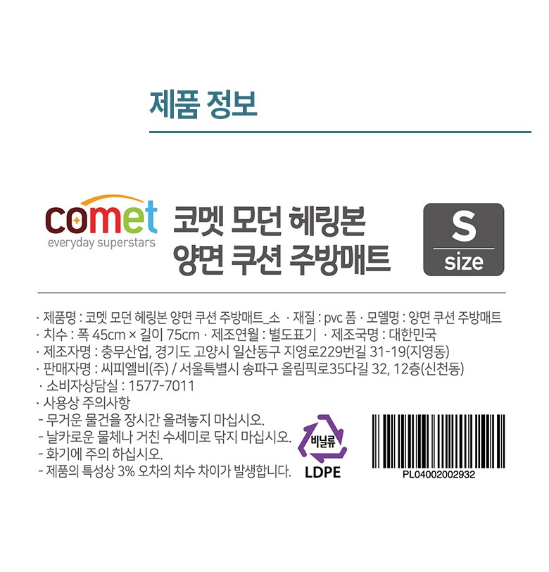 | 치수 | 750*450*14 | 제품구성 | 주방매트 |