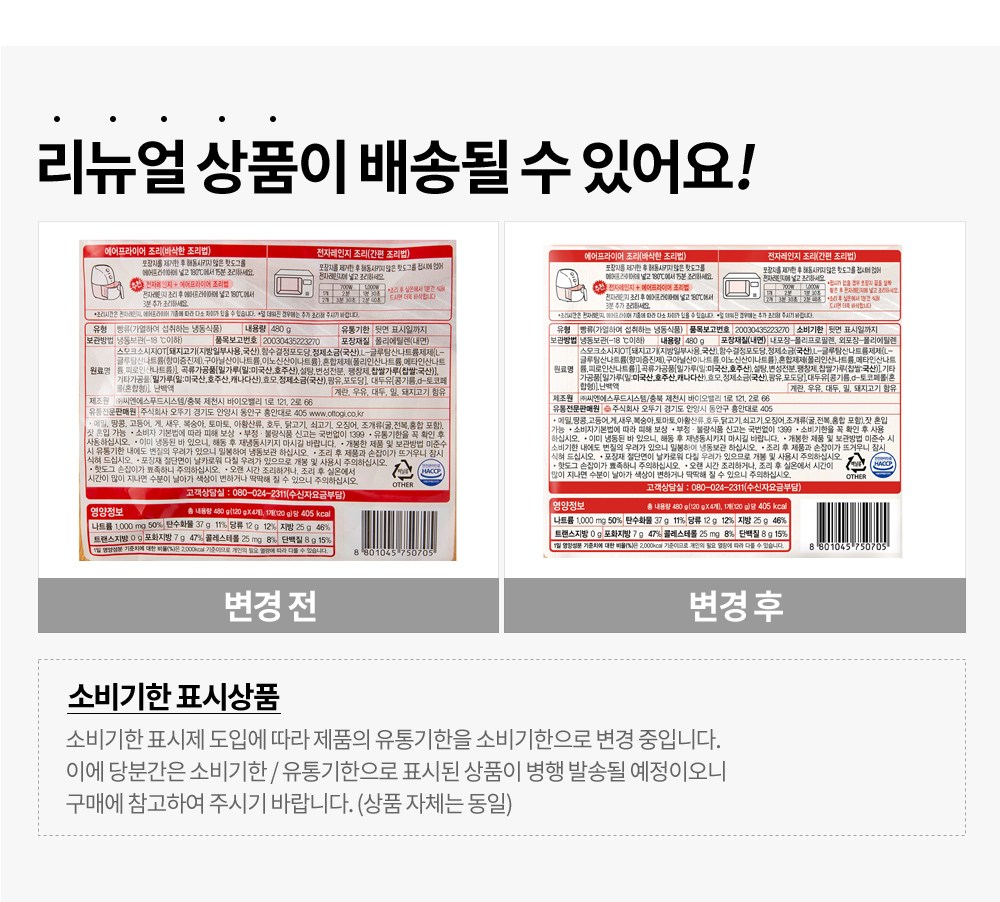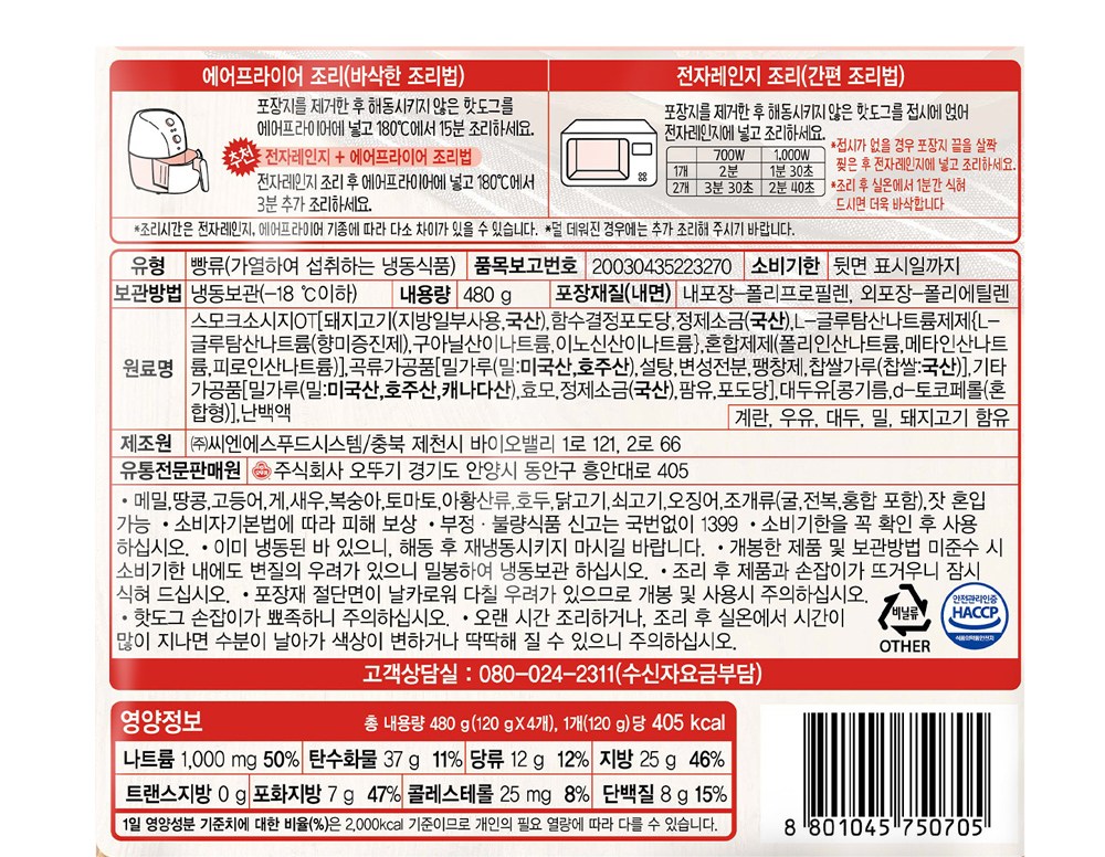 | 생산자 및 소재지 | ㈜씨엔에스푸드시스템 / 충북 제천시 바이오밸리 1로 121 | 제조연월일, 소비기한 또는 품질유지기한 | 소비기한(또는 유통기한) : 2026년 05월 24일 이거나 그 이후인 상품<br />제조년월일 : 2025년 07월 03일 이후인 제조상품 |