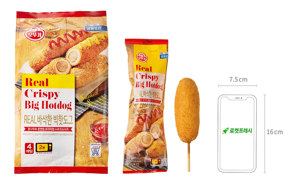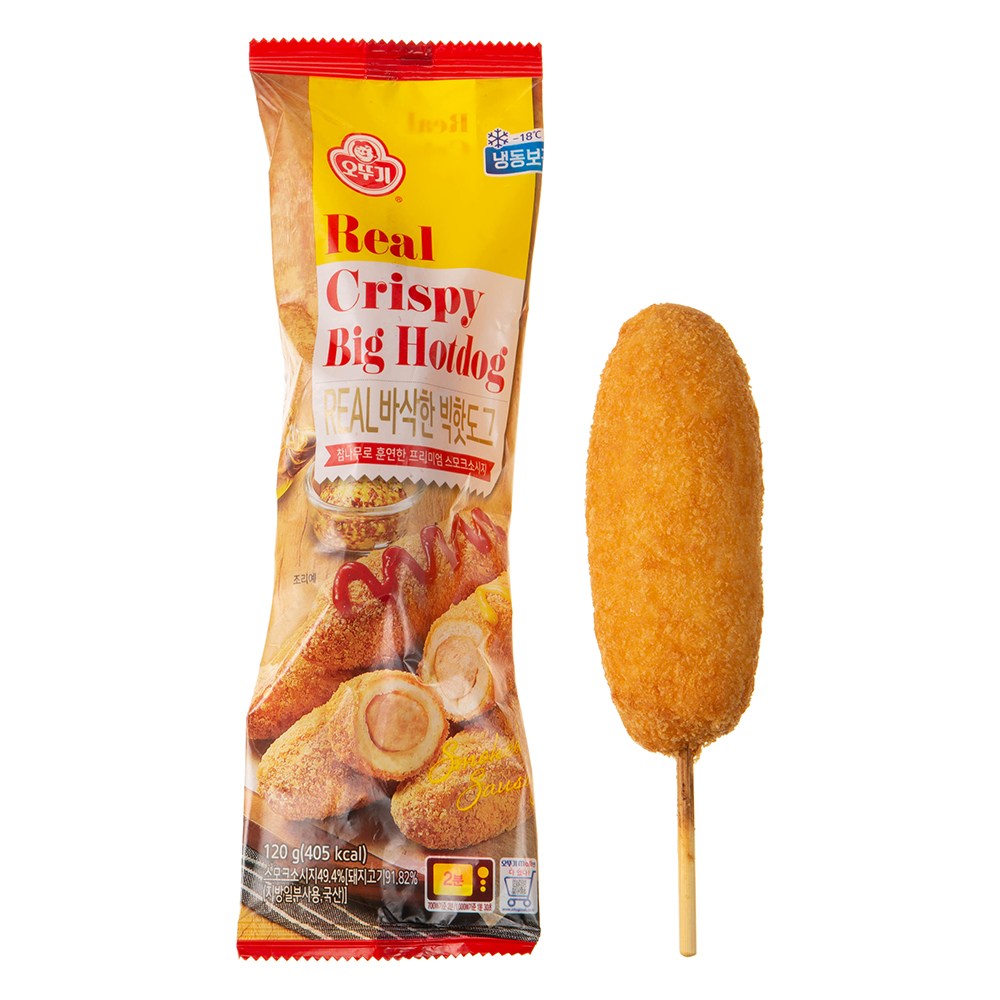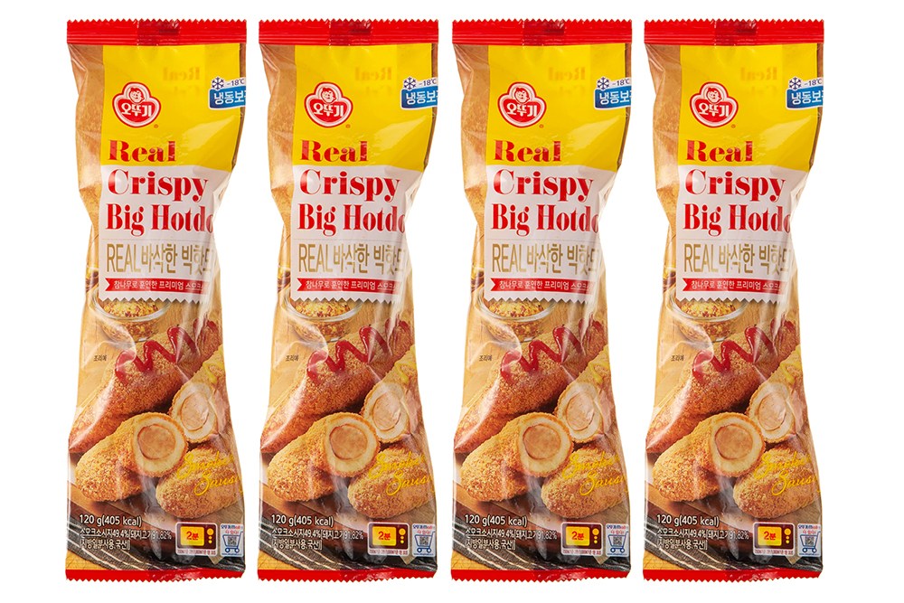 핫도그는 부드러운 빵과 고소한 소시지가 입안에서 조화를 이루는 간식입니다. 오뚜기 REAL 바삭한 빅핫도그는 큼직해서 더 푸짐하고 든든한 핫도그인데요. 고소하고 바삭한 빵 속에 참나무로 훈연한 깊은 맛의 스모크 소시지가 쏙 숨어있답니다. 하나씩 개별 포장되어 있어 깔끔하고 편리하게 먹을 수 있죠. 안심하고 먹을 수 있도록 HACCP 인증까지 받았어요. 출출할 때 간식으로 간편하게 즐겨보세요.