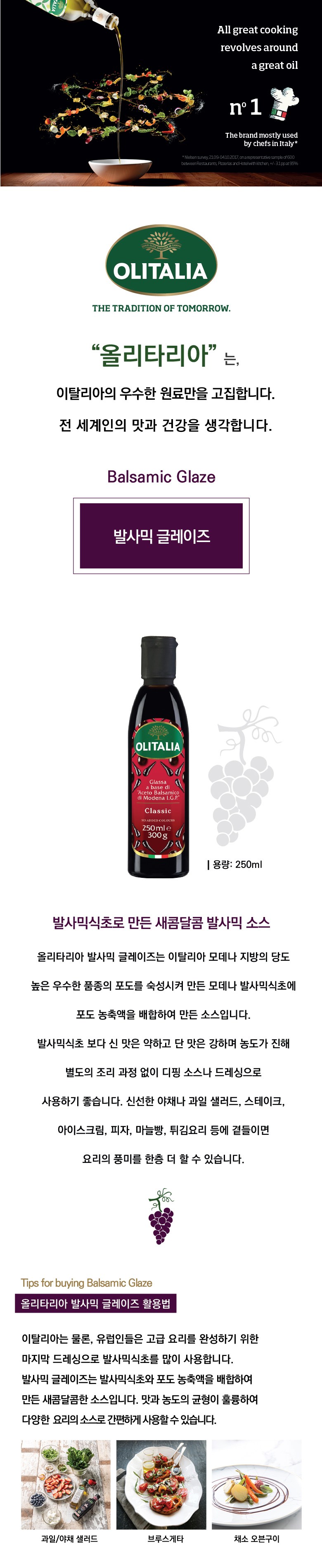 | 제품명 | 올리타리아 발사믹 글레이즈 크림 글라싸, 250ml, 1개 | 식품의 유형 | 소스(살균제품) |