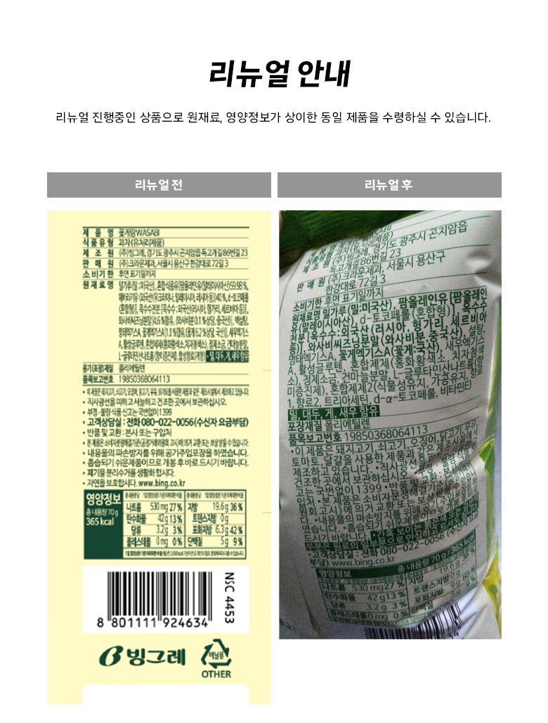 | 제품명 | 컨텐츠 참조 | 식품의 유형 | 컨텐츠 참조 |