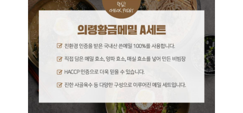 | 생산자 및 소재지 | 경남 의령군 낙서면 낙동강로4길 22 | 제조연월일, 소비기한 또는 품질유지기한 | 별도표기 |